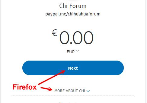 Mit andern Browsern (z.B. Google Chrome und IE) erscheint der selbe PayPal-me-Link in Deutsch.