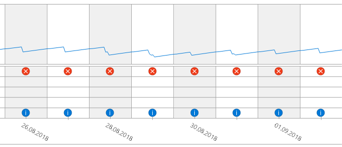 Angezeigt werden im Zuverlässigkeitsverlauf durch unterschiedliche Icons: